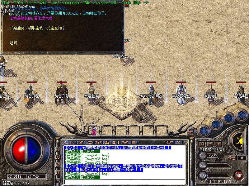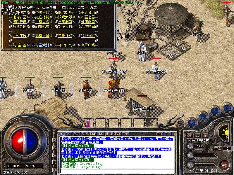 〖公告〗:特别提示:在每天的下午3点,6点,晚上10点,12点会开放武器专爆地图!必爆王者武器和大量元宝!进入地图需要赌筛子才可以进入!具体情况自己去体验!