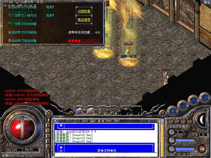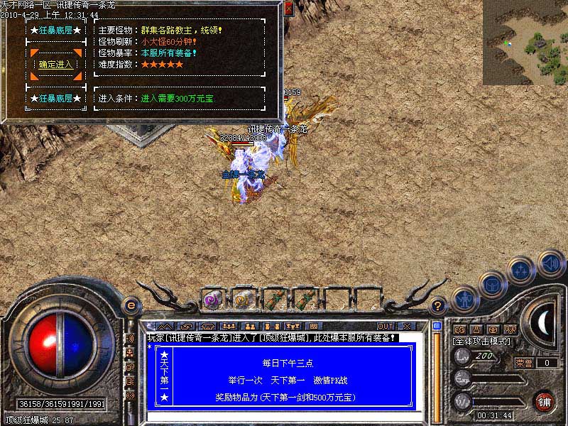 激情殿堂:每秒1200万经验200万内功经验!(可PK区域,可挂到本服顶级200级,内功255级)