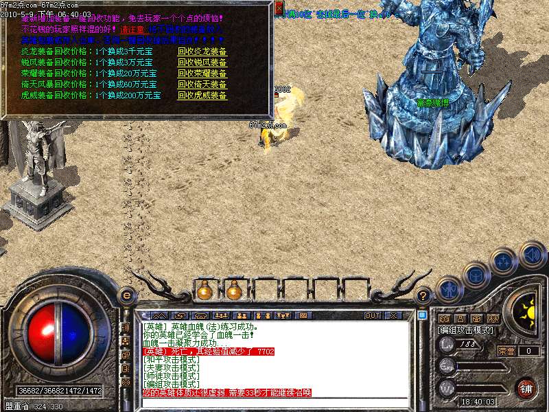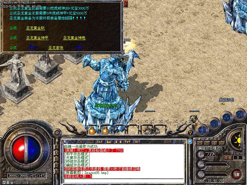 ⑤.全新荣耀岛。顶级狂暴城!圣龙黄金地图!装备狂爆!一键回收元宝狂赚!圣龙装备爆率1/400
