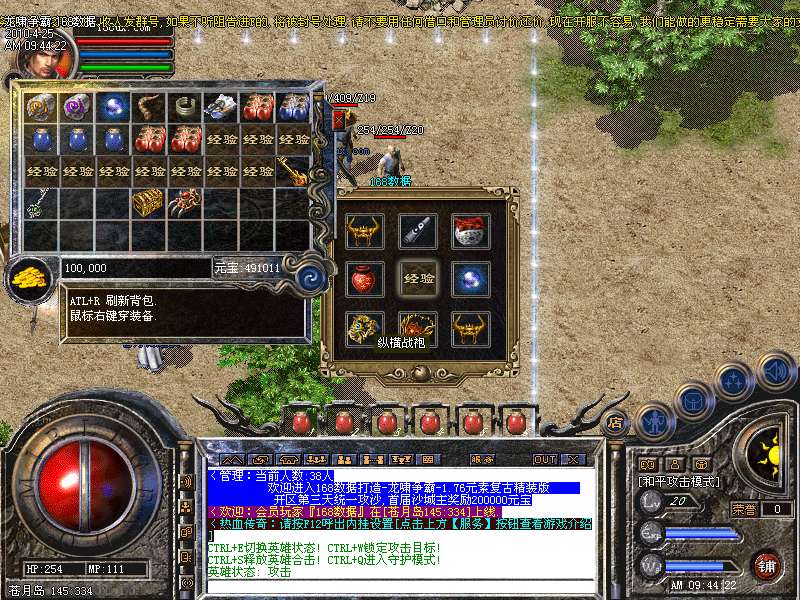 【游戏热键】Alt+S 道士下毒模式(互换,绿毒,红毒) | CTRL+V 切换小地图 | CTRL+Z 显示物品名称 | TAB 快速复制人名 | Alt+G 快速组队 | Alt+R 刷新背包 | Alt+Q 快速退出游戏.