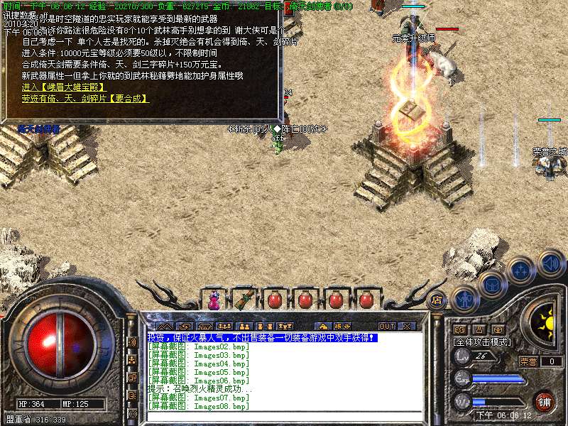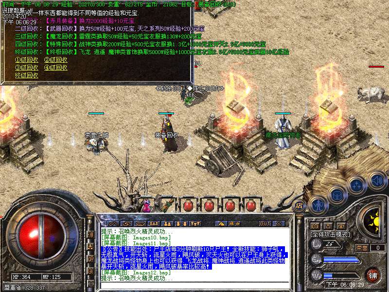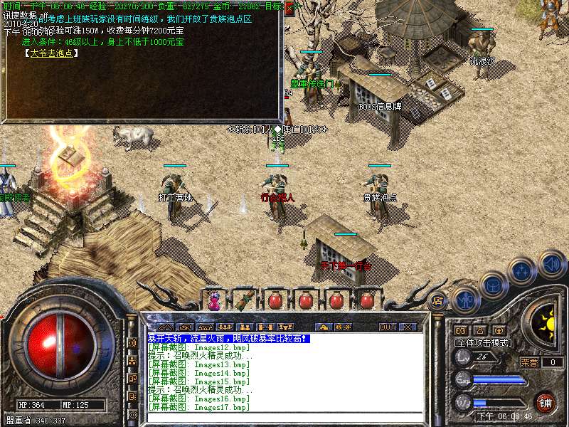 快速升级:强烈推荐 贵族泡点 和 元宝练级地图!聚灵珠(大)和(小)也是快速升级的通道喔 魔龙 烟花教主 王者天将 摇钱树等BOSS会爆