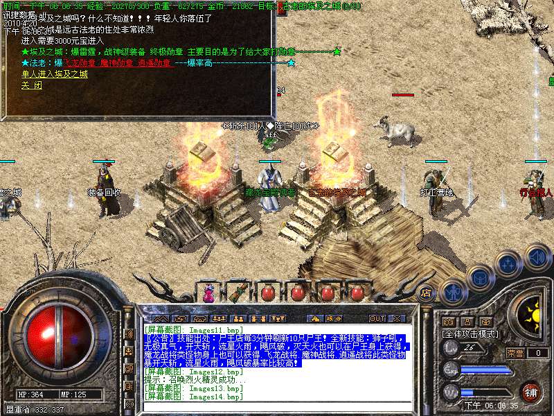 特别地图:王者天堂为打宝天堂,每天15点.19点.0点开放.此地图任何大小怪物都可以有机率暴出赤月类装备和雷霆.战神装备.王者魔王可暴出终极武器!