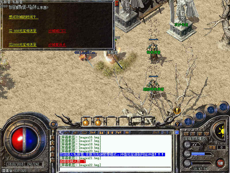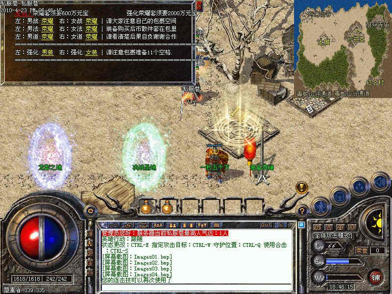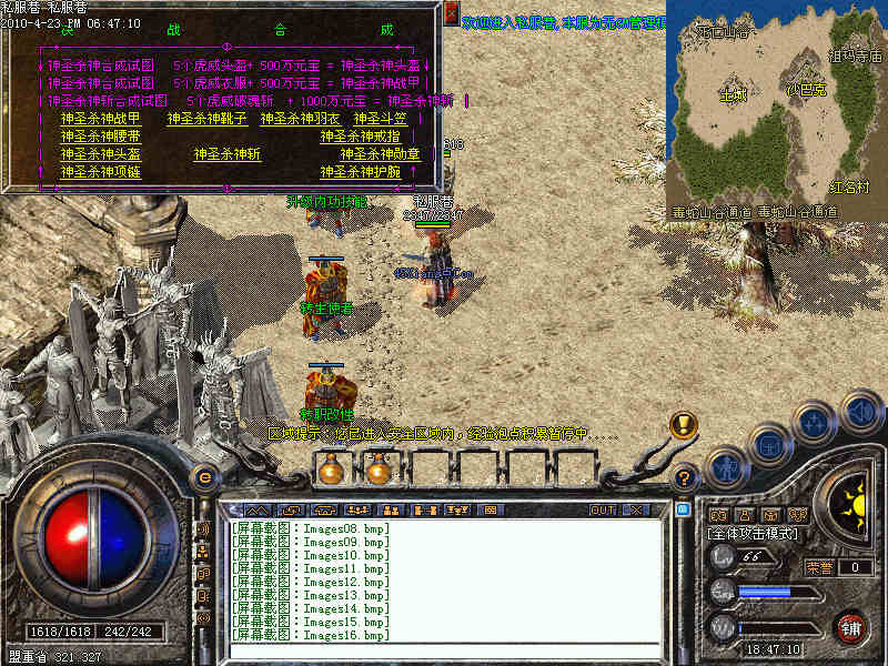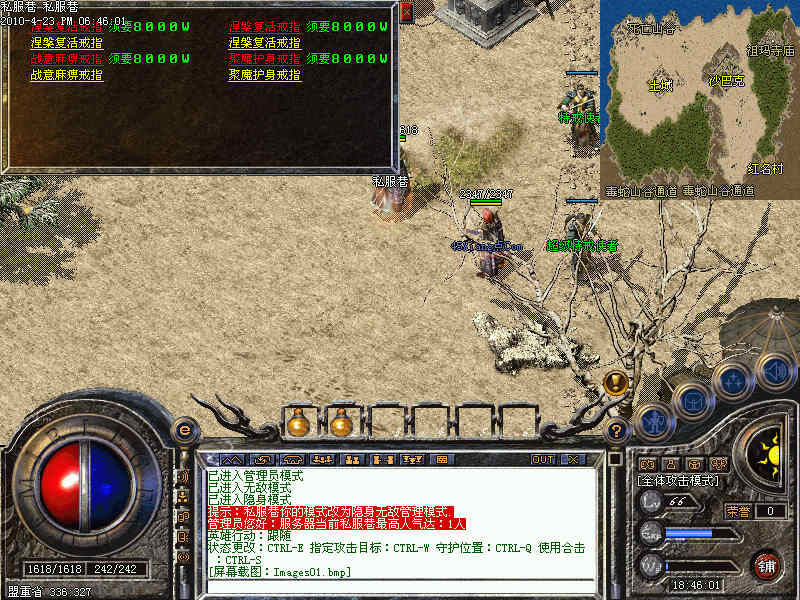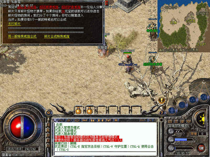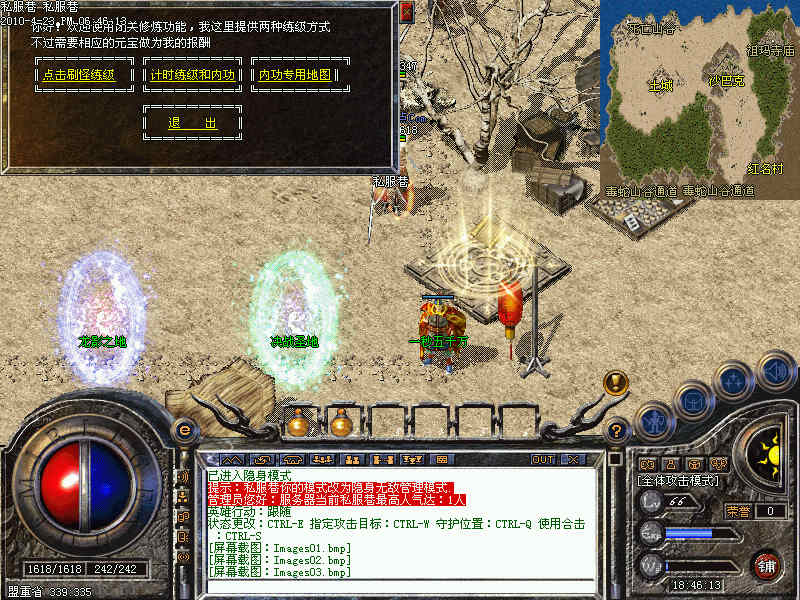版本特色:全国独家增加龙影之地,烈火之地,决战圣地,独家新装备:神圣杀神套,虎威弑魂套等,版本默认隐藏灭神地图,锐风专爆,儿童乐园等地图,需要的自己开放即可!