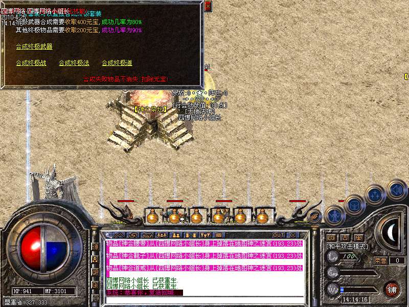 增加了3套时尚的装备,新加装备可以使用赤月装备完美合成,增加了沙城专用武器,此武器需要攻城后联系管理员获得!