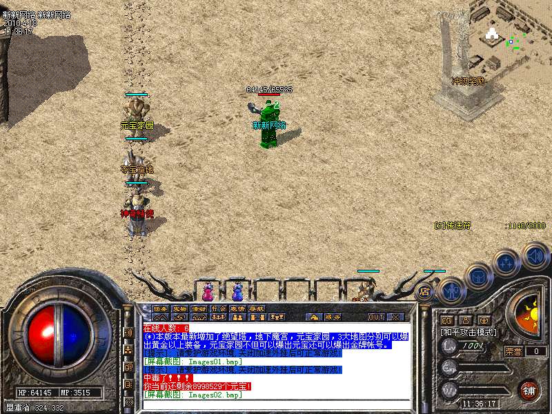 (*)本版本最新增加了绝望塔,地下魔宫,元宝家园,3大地图分别可以爆出黄金以上装备,元宝家园不但可以爆出元宝还可以爆出金牌帐号。