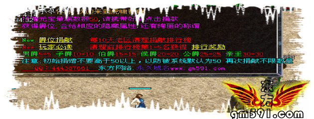 〖提示〗:新地图.装备.副本.进入条件以及合成材料请到土城酒馆处查询.排行榜捐献每月1号.10号.20号清零.奖励丰厚详情查看土 爵位捐献