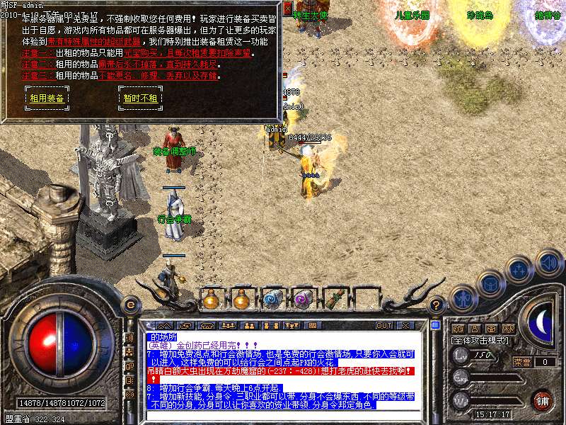 [装备租赁]通过少量元宝+声望可以租得全部高级套装,不能丢,不能修,不会爆。