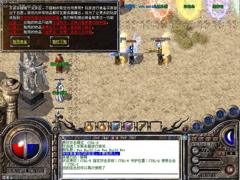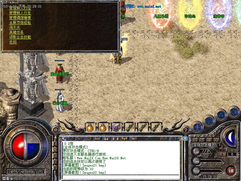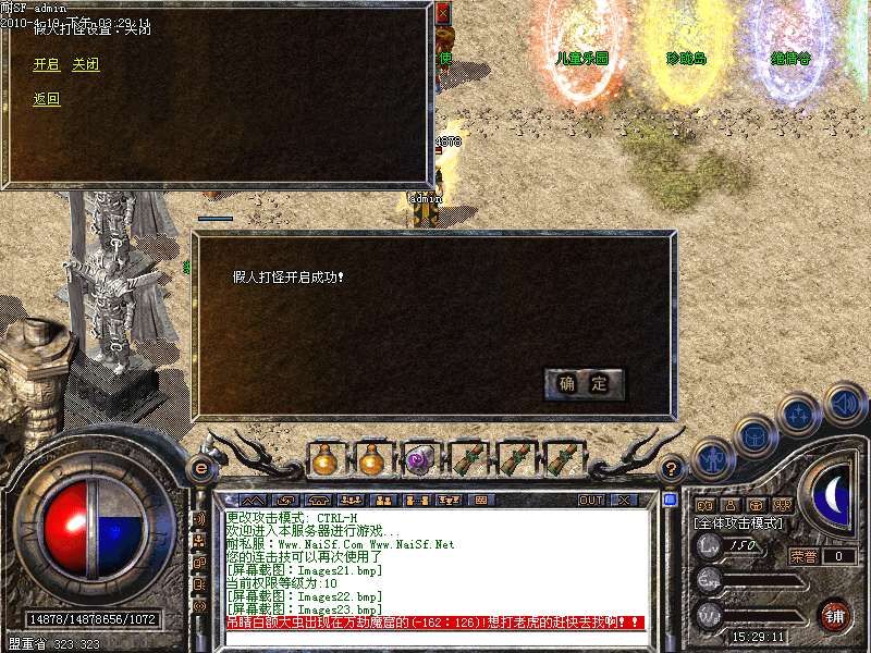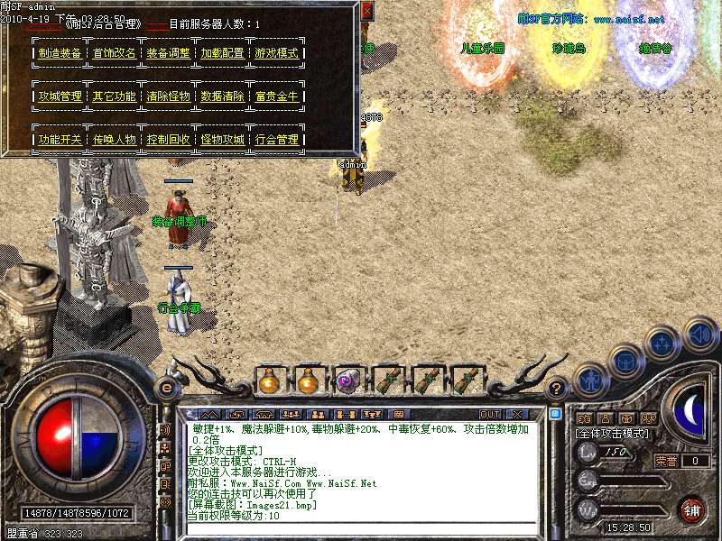 [后台管理]游戏中输入@后台管理 帐号:naisf 密码:0 注意修改密码!