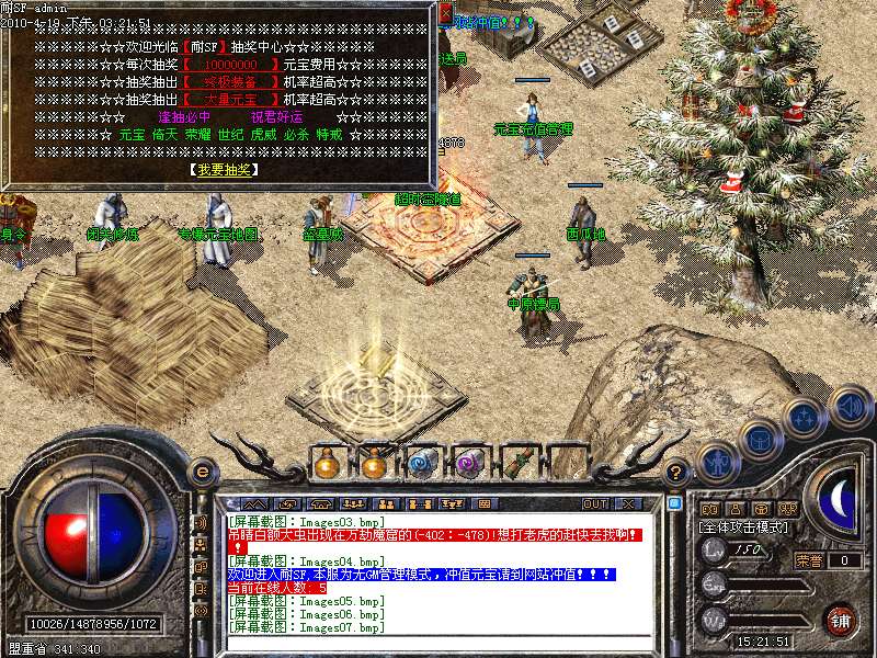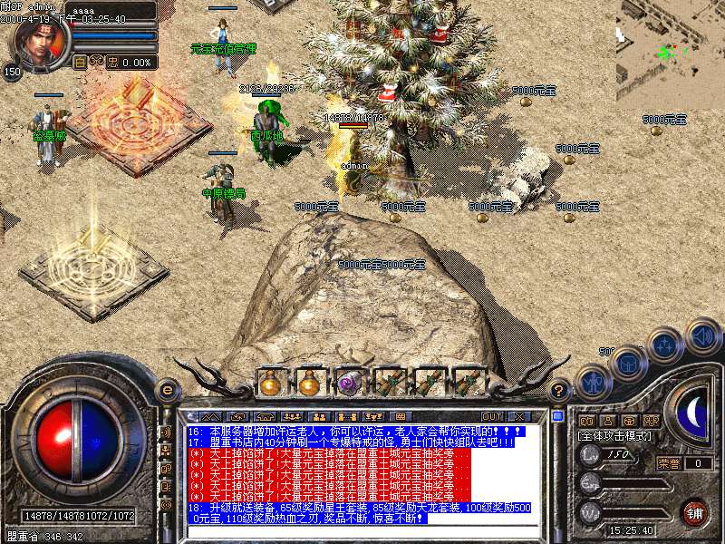 [天降横财]每隔15分钟,会掉落大量元宝在土城元宝抽奖树旁。