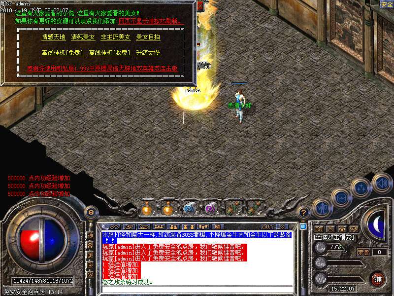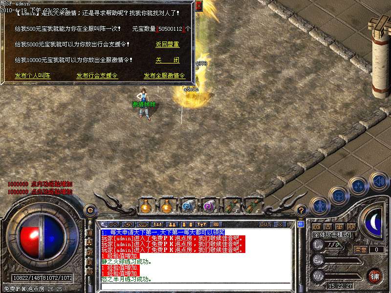 ⒏调整闭关修炼,安全泡点每秒50万经验,PK泡点每秒100万经验。