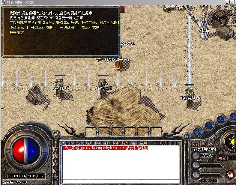 装备点化师那里有详细的装备点化介绍!有提炼经验珠系统,有加属性系统,各种宝石所有BOSS都有爆出!