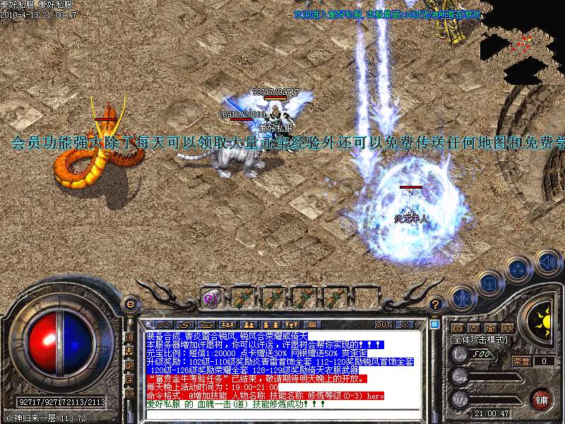 版本特色:独家连击体验激情快感!公司长久运营、定期更新。天天抢沙奖励1000W元宝