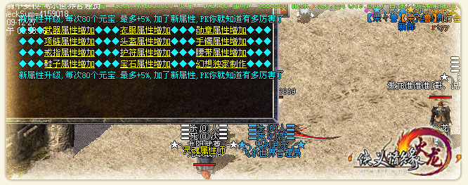 【沙城系统】沙城城主尽显王者风范,可以全服红字公告!武器最多升5点,时间为3分钟左右一次.