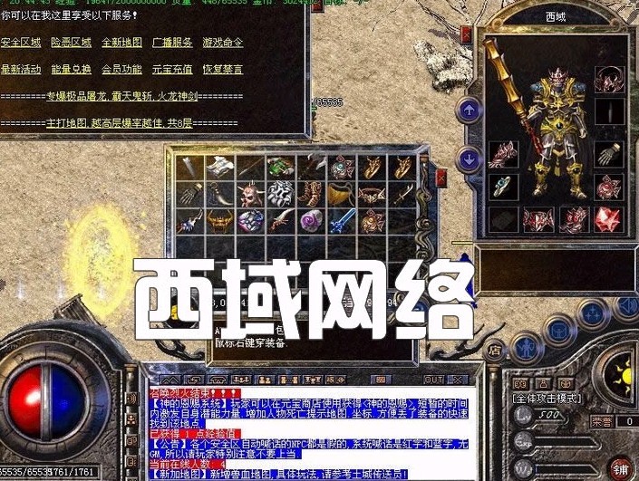 【精心爆率】经过我们技术人员的精心测试调整,爆率非常合理.服务器所有装备都能爆出,更是把BOSS爆率放在第一重点.注重BOSS爆率,绝对不会给你感觉到不爆赤月装备的无奈,同时也不会感觉到装备乱爆赤月的无趣.只要你有足够的实力,赤月装备绝对不是梦想!服务器的爆率为满足散人的需要,经过技术人员精心修改,大大的提高了终极BOSS的爆率.只有土安全区的暴不暴谁知道才爆幸运项链,极品爆率比其他高三倍,只有(终极BOSS)爆 (死神的微笑) 和 (霸天鬼斩)武器 .