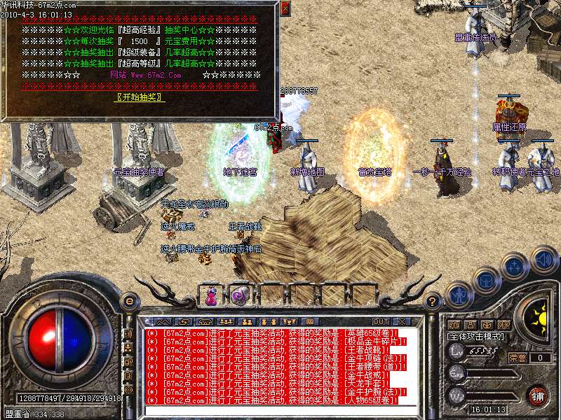服务器开区第三天晚上攻沙,奖励80W元宝,以后每次攻完沙后城主奖励40W元宝,老区天天攻沙!!!