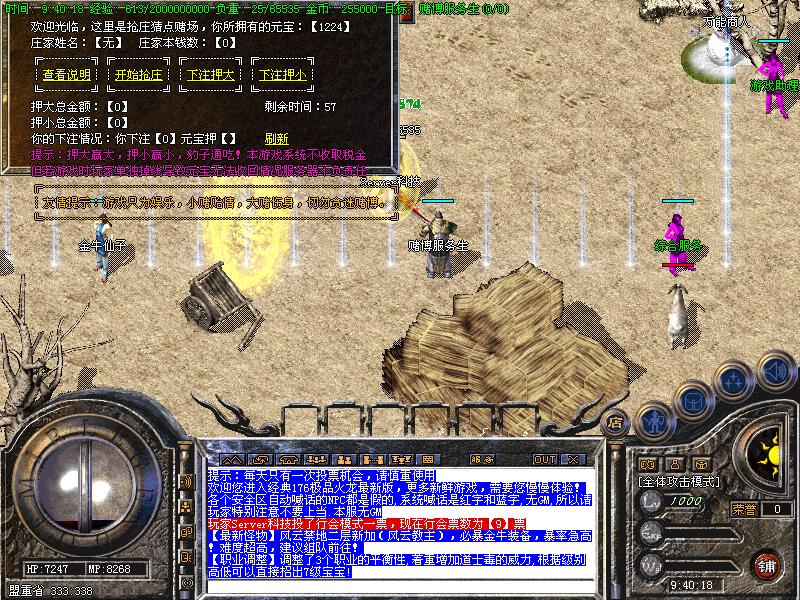 新加功能:坐庄赌博,赤月回收元宝,取消贵宾地图!兽血增加极品赤月火龙暴率