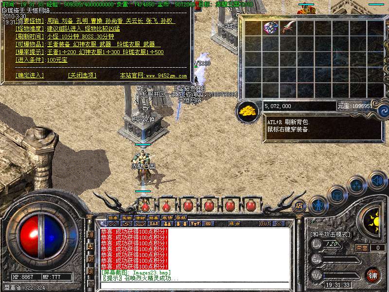 - ☉ GOM引擎传奇端游【超级骷髅王之五行世界】Win一键端+配套补丁网站+架设教程