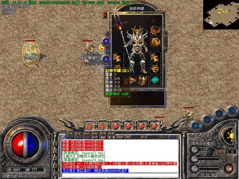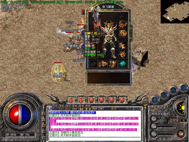 4、高级装备幻神系列 在终极神殿新BOSS爆出爆率一般