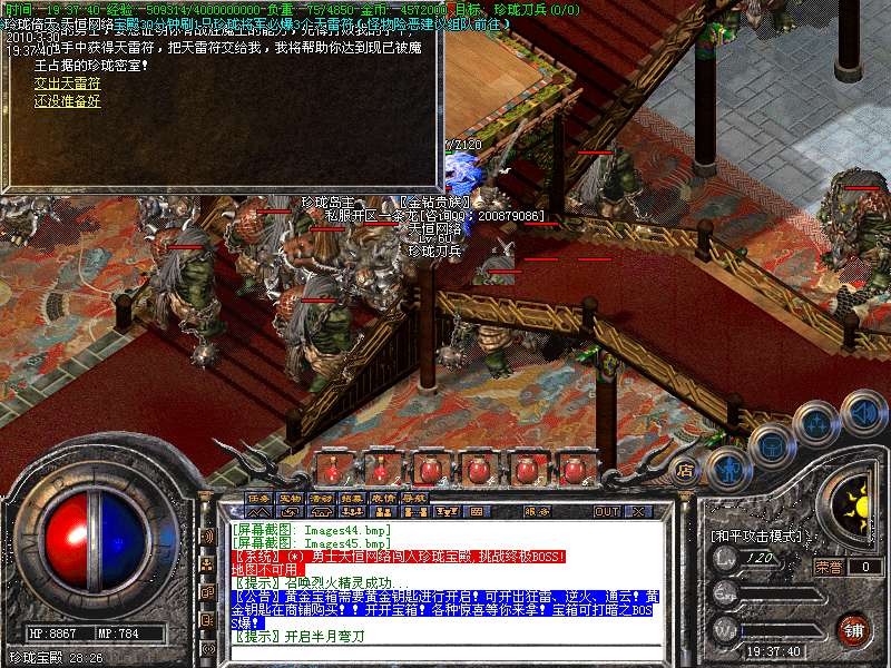 3、中级装备狂雷、逆火、通云、王者系列装备在 夺命岛、聚宝盆等BOSS有爆,爆率一般 。