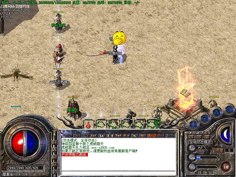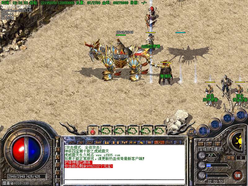 【特色功能】更新元素系统,和东南西北赌博系统,修改了加入雇佣兵不能转生的问题,更新的最新盛大的虎威套装,和倚天剑此剑,带终极技能倚天劈地!