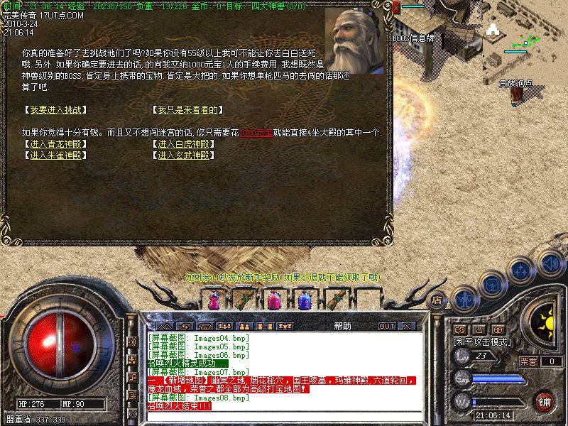 【刷新介绍】牛魔大厅每20分钟刷新两只牛魔王,一只暗之牛魔王,主要暴怒斩,龙牙,逍遥扇,屠龙也有一定机率。