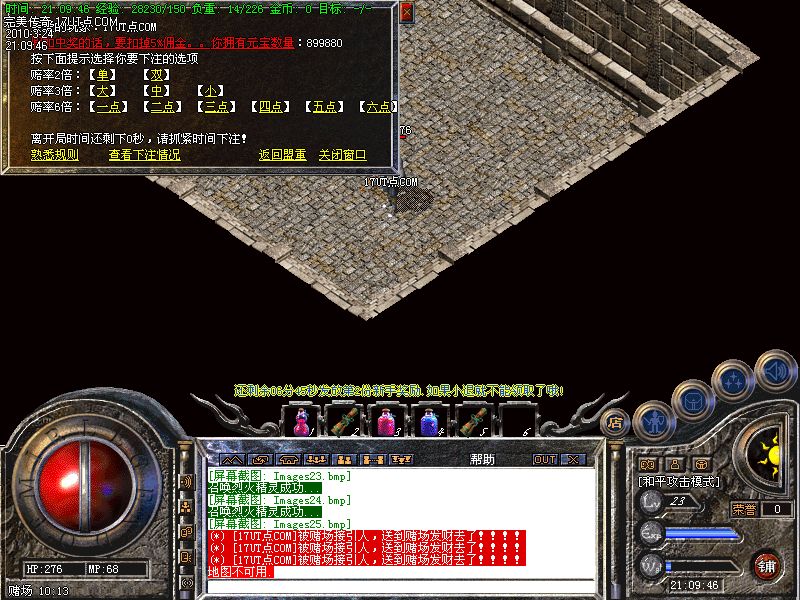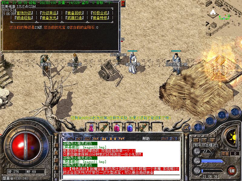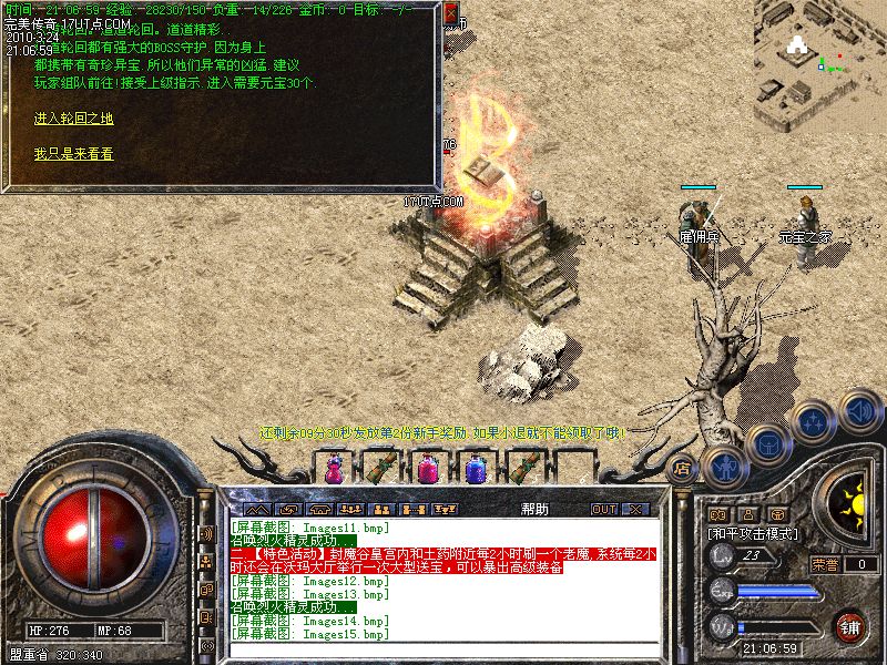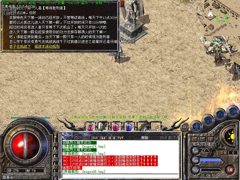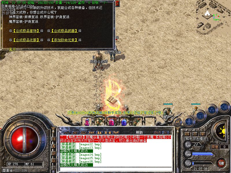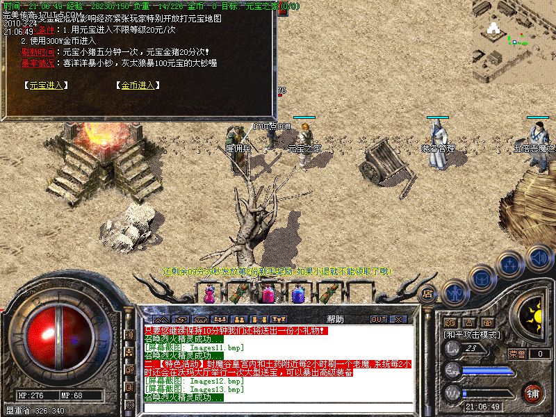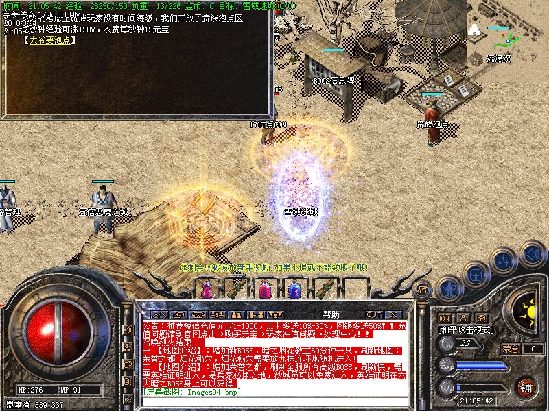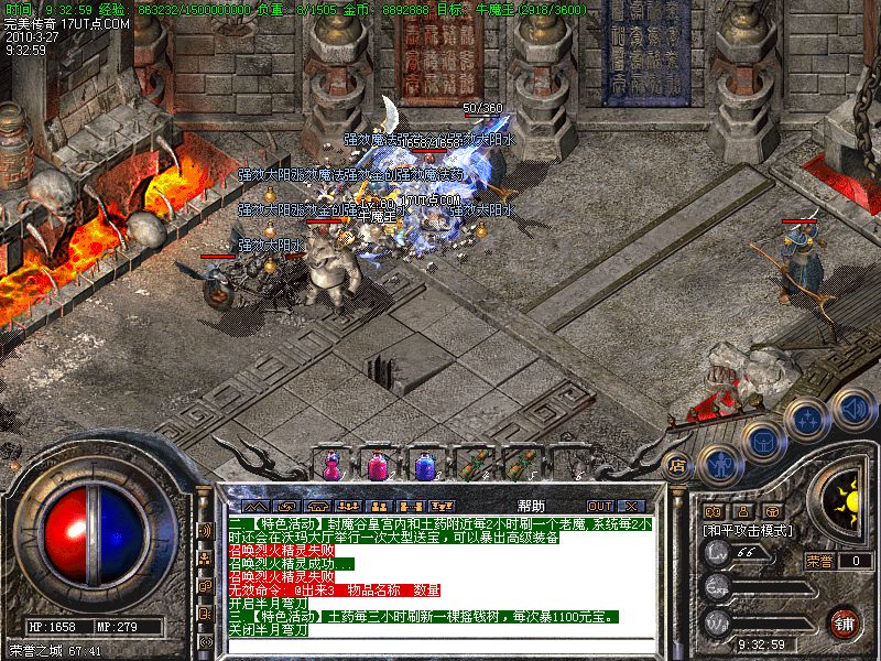 【特色活动】封魔谷皇宫内和土药附近每2小时刷一个老魔,系统每2小时还会在沃玛大厅举行一次大型送宝,可以暴出高级装备