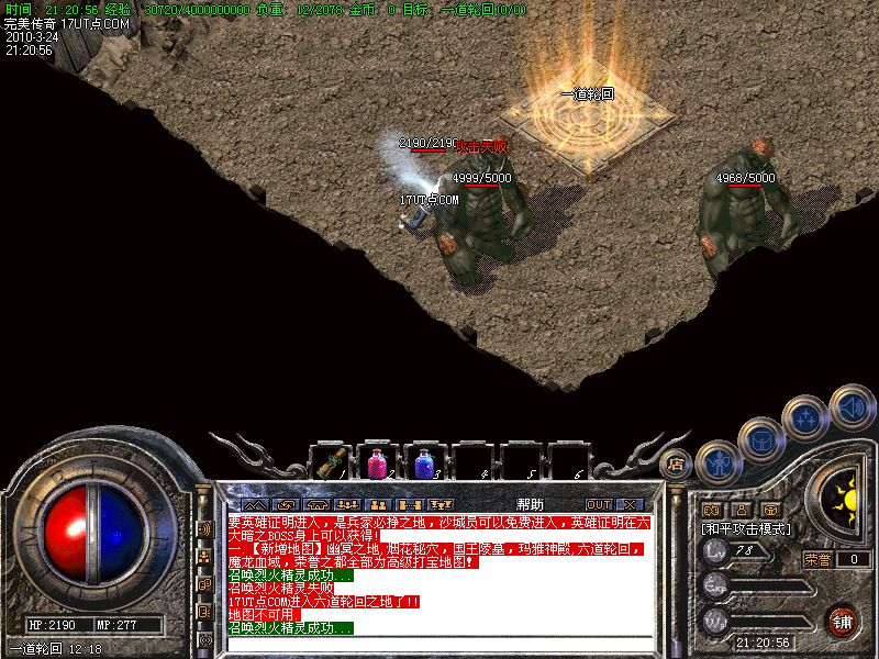 【特别地图】六道轮回,共七层,每进一层难度增加,闯过六层可以领取1000元宝奖励,或者进入终极轮回之地挑战终极BOSS,此地图暴率非常高!