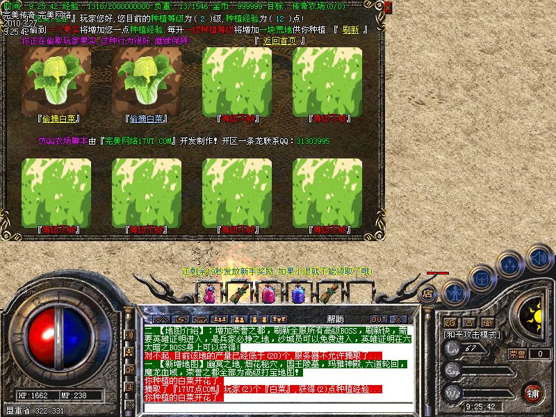 [传奇农场] 仿QQ农场,真正实现了QQ农场功能,不得不体验的一个功能.