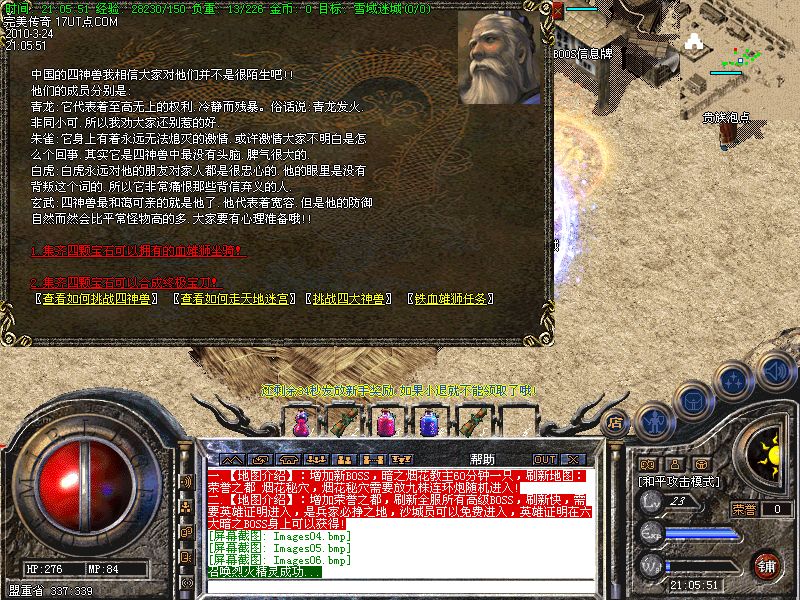 【铁血雄狮任务】服务器的四大神兽任务,只要集齐四个神石即可兑换一头超强大华丽的铁血雄狮座骑,骑上之后游戏速度快人一倍!