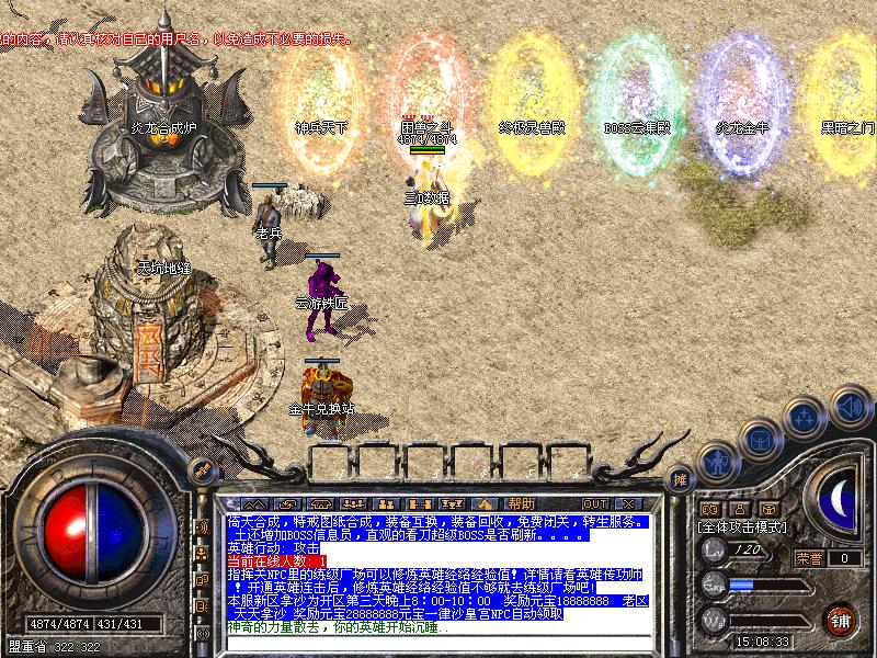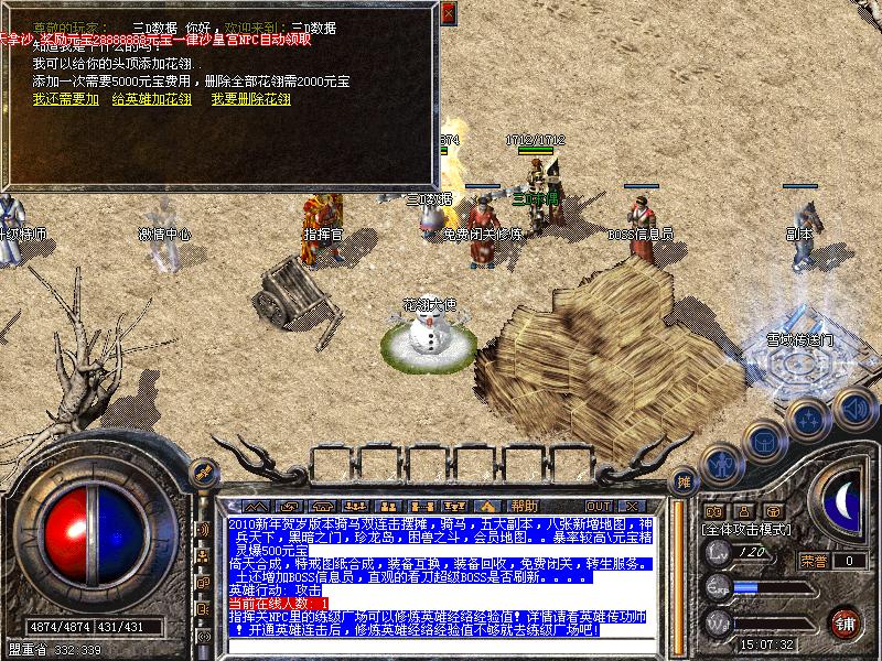 本服新区拿沙为开区第三天晚上8:00-10:00 奖励元宝18888888 老区天天拿沙 奖励元宝28888888元宝一律沙皇宫NPC自动领取