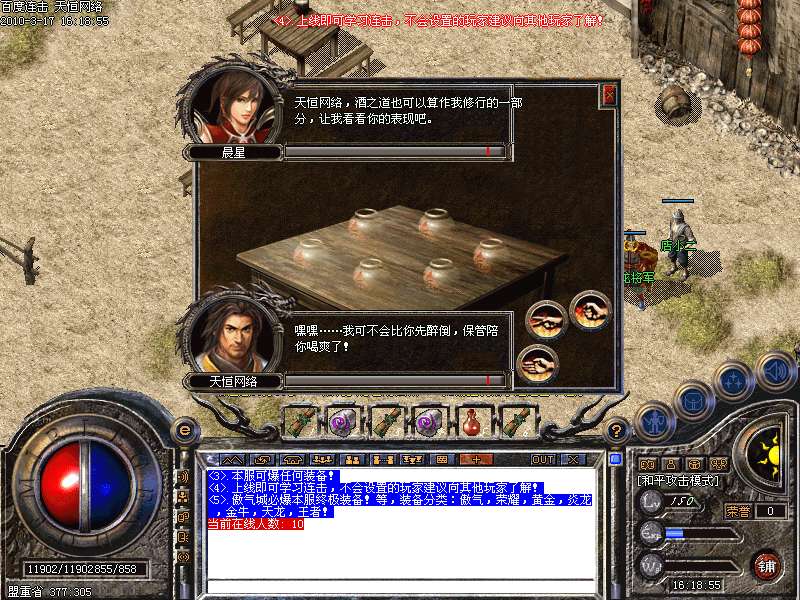 打初中级装备,另外进入本地图可和免费闭关一样自动获得100万经验和内功经验!