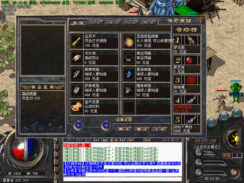 【公告】本服新添加赌博系统.元宝店铺添加了新技能书.新物品.让您在任何服找不到的激情.大家慢慢体验