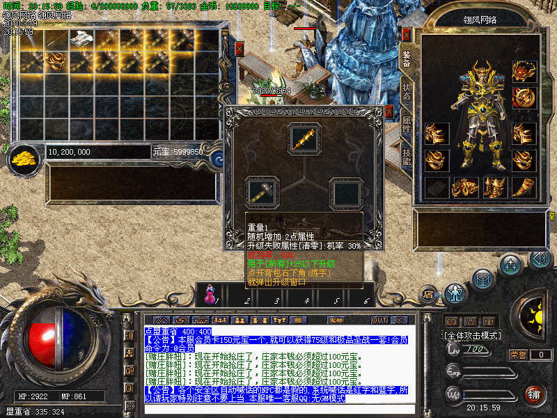 【沙城系统】沙城城主尽显王者风范,可以全服红字公告!武器最多升5点,时间为3分钟左右一次!