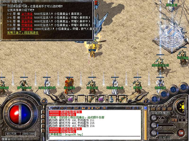 游戏介绍②: 本F的等级最高为130级,增加内功技能全部免费送-[到了等级送].终极装备是倚天荣耀装备可在本F终极地图(荣耀之地和荣耀之城)直接暴出或者用封神装备合成,里面的怪物为人型怪,穿什么就暴什么,无比凶猛!建议组队前往!荣耀套装备带有暗藏属性!特别是倚天武器,想知道什么样可以带上试试