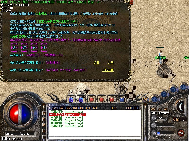 1、商城位于经验条边上的[铺]字,内可购买:三倍经验勋章、金条、传送符、祝福油……等物品以辅助玩家发展游戏。