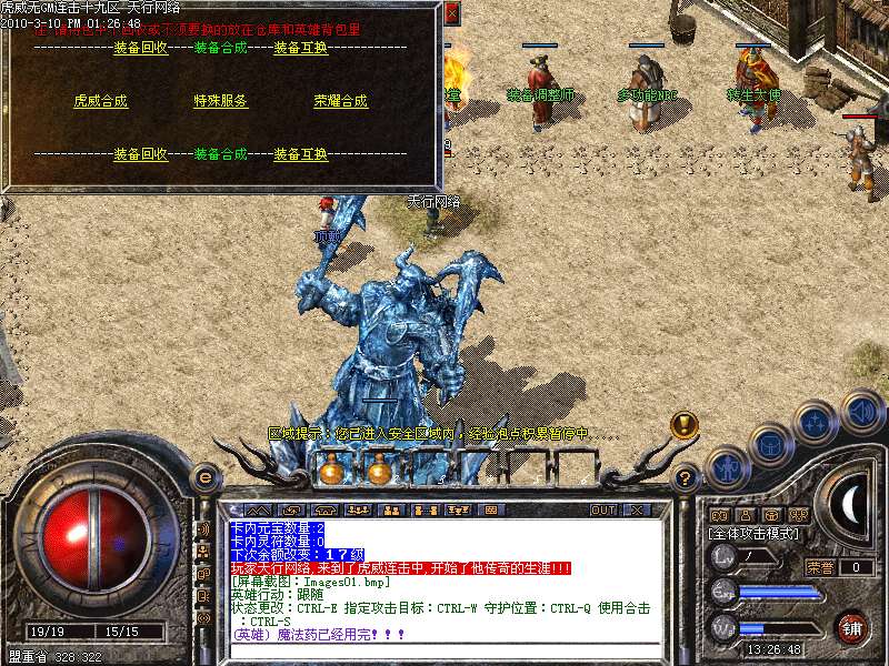 ①.最新加入虎威套,虎威之刃,倚天剑,衣服,荣耀套装,1.2倍攻击+防御的属性,套装更有更无敌的属性