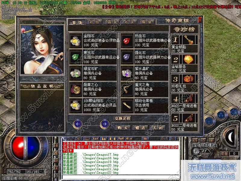 特别提示:本服不断更新!新增地图 玲珑圣地 BOSS玲珑魔王 刷新时间30分钟 爆终极的最佳选择!
