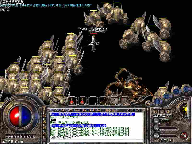 帮助按钮:非常强大的帮助按钮使您的游戏更方便游戏更明晰.在游戏的控制版有[帮助]按钮,或在游戏里输入[@帮助] 此按钮为本服重要特色钮.请玩家进入游戏后仔细查看,内有装备淬炼系统的启动.