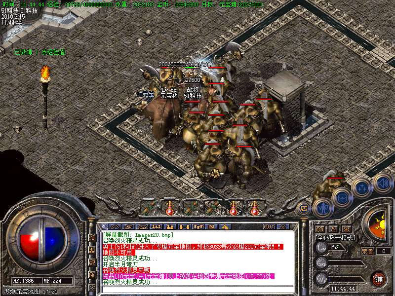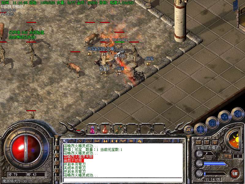 九:新技能——武士增加:彻地钉 法师增加:群体雷电术 寒冰掌 灭天火 火龙气焰 道士增加:群体施毒术 气功波。