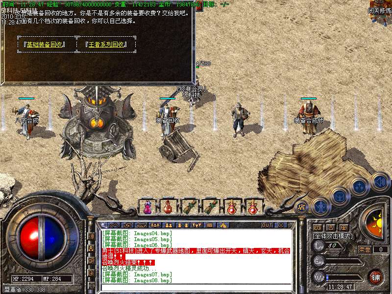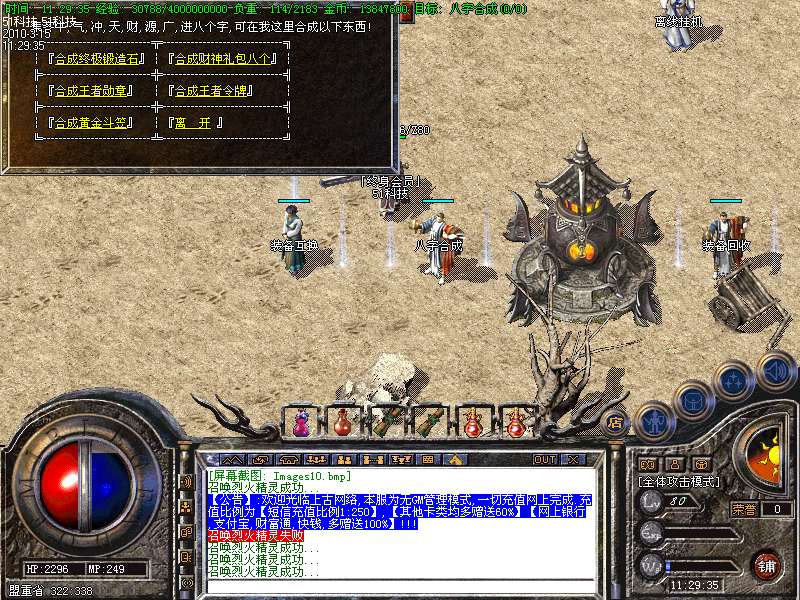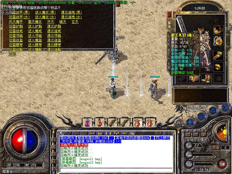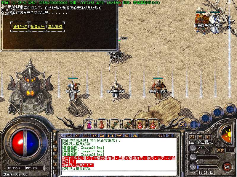 三:当你累计一定数量的装备后可合成更高一级的装备,如开天,三把普通的开天就可以合成+1的开天,三把+1的开天合成+2的,麻痹、护身、复活都可以合成。