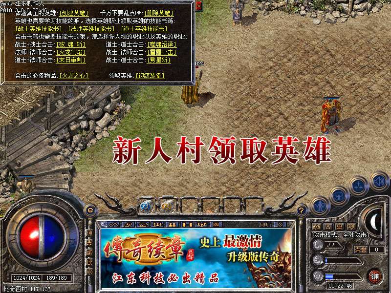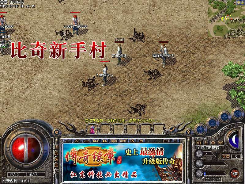 新手出生在比奇:比奇东村,比奇难村,比奇西村 出生地:129*146 上线可以领取英雄
