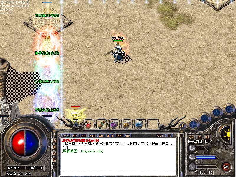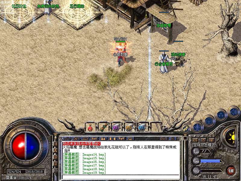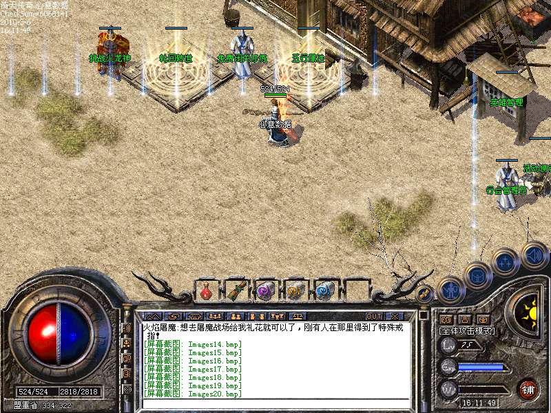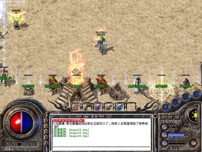 活动④: 倚天剑阵,不断的向剑阵中投入魔法神石,达到100颗有机会奖励倚天剑一把,本服38个BOSS,每个BOSS必爆魔法神石一颗,每小时刷新一次BOSS.