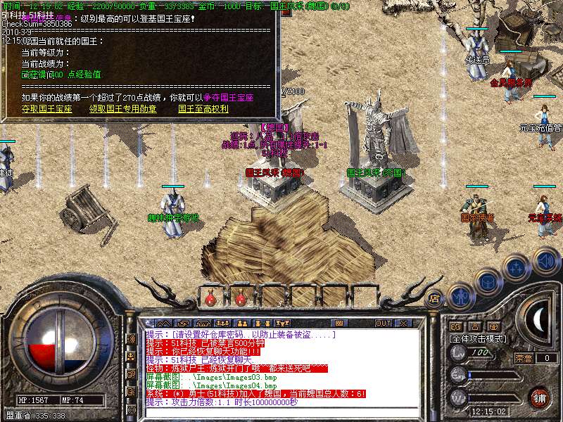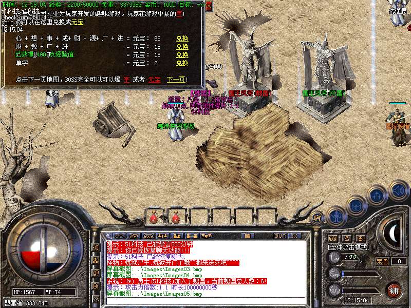 B开区后第3天定于7月2号晚上8点,所有行会免交头像统一攻沙,沙老大奖励~元宝10000个,请攻城结束后立即在<沙巴克总管>那里领取!!此活动为51科技版权所有!!!