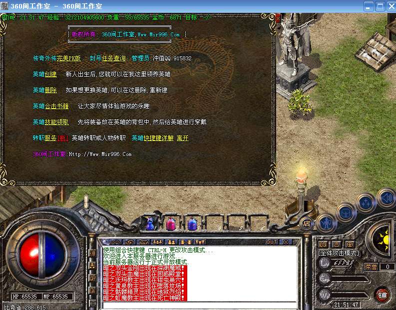 - ☉ 热血传奇单机版V176怀旧复古智能假人攻沙陪玩单机一键安装GM后台免虚拟机