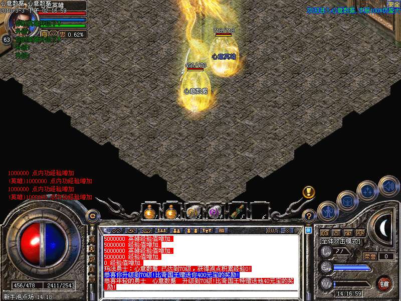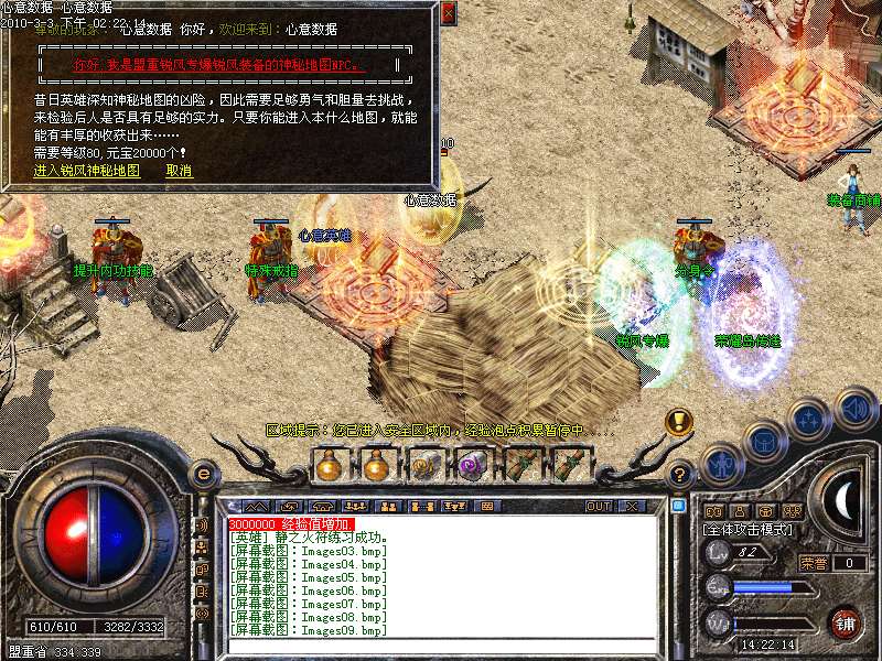 11: 新地图,锐风地图.青龙,炎龙,雷龙.金牛之地,灭神地图.命运之门(注:闯关到80可随机获得经验内功经验装备.元宝等物品)