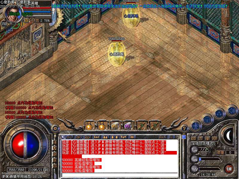 7: 增加免费泡点和行会激情场.也是免费的行会激情场,只要你入会就可以进入,这样免费的可以给行会之间点起PK的火花.