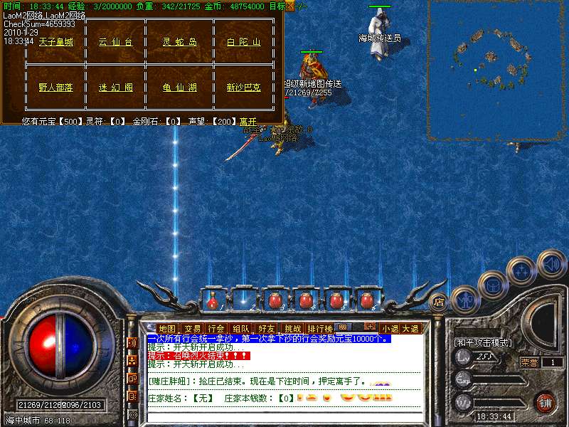 ★. 强大的雪域系统,分五个门,每个门五层,每层怪的经验,防御都不一样,最高的一个怪只要你