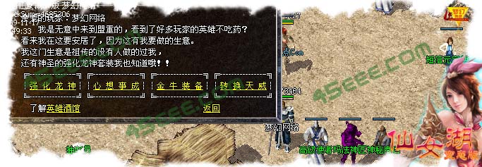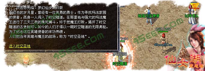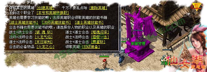 新人出生后..新手练级场可以升到100..别忘记领取英雄噢.嘻嘻.它可是很重要的.100级系统会自动换上摄魂装备噢..恭喜你^_^.出师囖...接着你可以点开传送员.哇咔咔..向猪7出发咯~