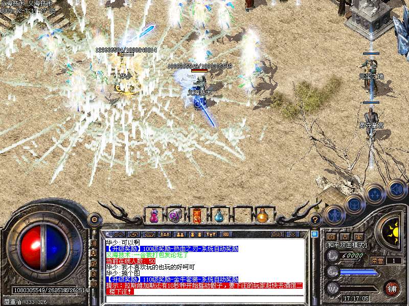 [255,56]本服暴率相当高,新手可以进雷炎洞,元宝之地,猪七打元宝!而且元宝暴率非常高哦,赶快行动吧!!!