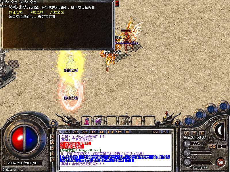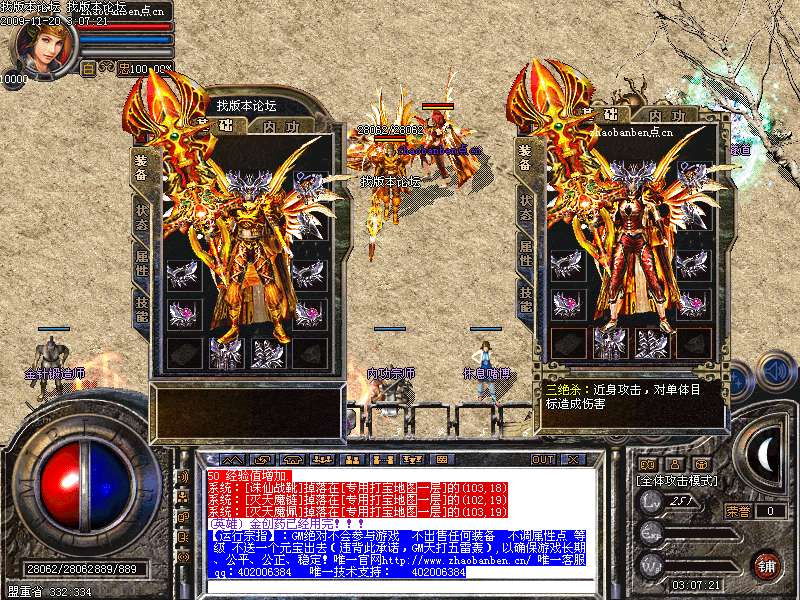 【超级服务】:超级服务器功能,转职变性,全服喇叭,升级装备属性,六大焰火屠魔等强大功能,更添游戏乐趣